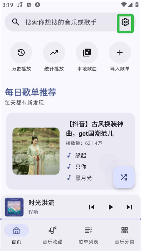 2、首页提供每日个性化歌单推荐,展示升榜、新歌榜等热门榜单,助力快速发现新歌与潮流曲目。