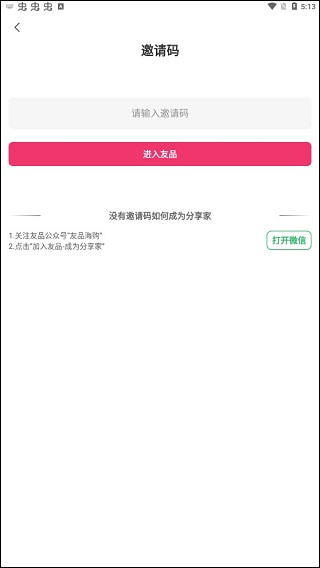 2、接着复制所提供的邀请码,点击“加入优品-成为分享家”即可。