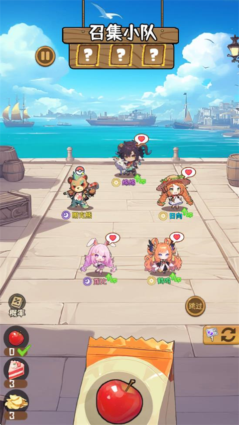 2、进入关卡后可以消耗食物招募队员,不同的食物可以招募的角色是不一样的。