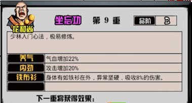 9重属性值(与之前版本差别):【引气归元】引导经脉归入丹田,气血增加20%