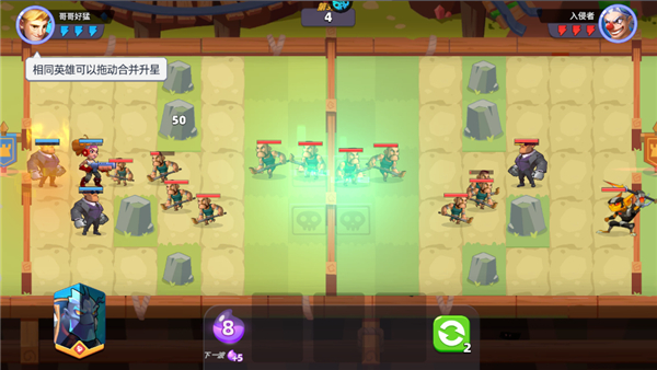 3、进入战斗放置角色在地图中,放置不同角色需要消耗资源(点击刷新可以出额外的角色)。